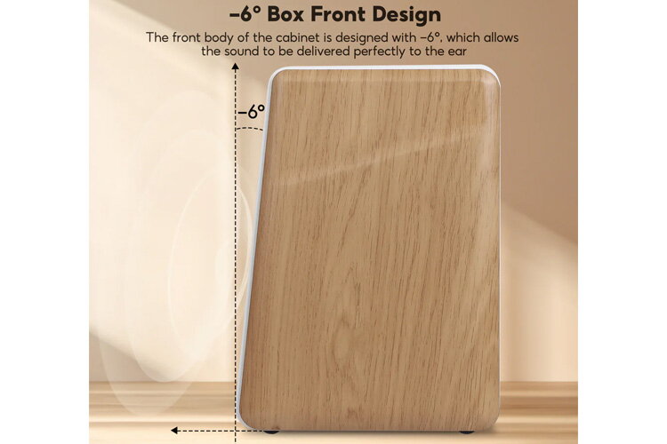 - Angled Sound Delivery: 84° tilted front panel directs audio toward the listener for clarity.