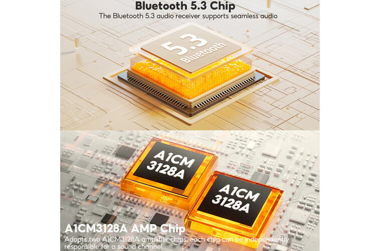 Features:- Multiple Input Options: Bluetooth 5.3, Optical, ARC, USB (DAC), and RCA for broad device compatibility.