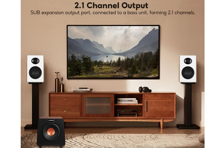 - Subwoofer Output: Dedicated SUB out allows expansion into a 2.1 configuration.