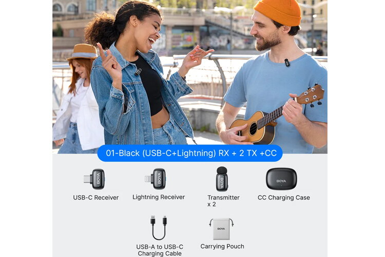 BOYA Mini 2 Wireless Microphone USB-C & Lightning - Space Grey