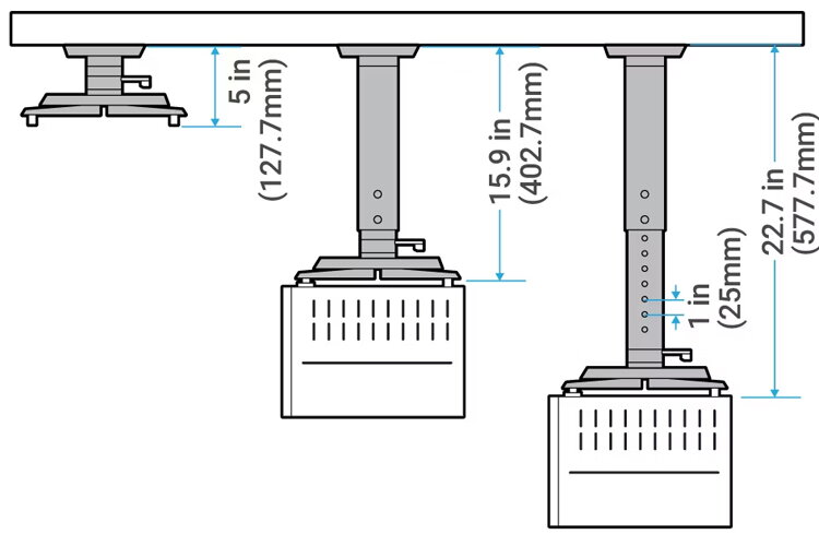 - Universal Projector Mount: Designed to provide an easy and reliable ceiling mounting solution for compatible projectors.