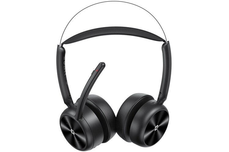 The EMEET GeniusCall HS80 is a lightweight wireless on-ear headset featuring Super ENC noise reduction, a rotatable boom microphone, and up to 70 hours of playback. Designed for hybrid work, it supports Bluetooth 5.2, 2.4 GHz, and USB connections, and includes a charging base for convenient desk use.