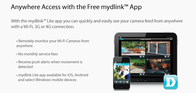 - Remote Viewing – View on iPhone®, iPad® or Android® with mydlink™ app or mydlink.com