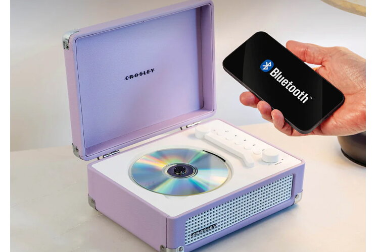 The Crosley Cruiser Portable Retro CD Player reimagines the classic 90s aesthetic in a stylish lavender briefcase design. This versatile player allows you to enjoy your favorite discs through built-in stereo speakers or stream digital music wirelessly via integrated Bluetooth technology.