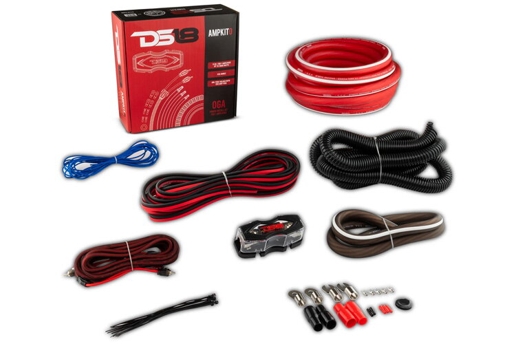 The DS18 AMPKIT0 is a high-capacity 0-gauge car audio installation kit designed to support amplifiers up to roughly 3 500 W RMS. It includes power, ground, remote and signal wiring along with a 250 A ANL fuse and all the necessary hardware for a professional-quality install.
