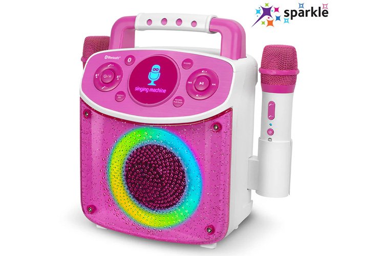 The Singing Machine Mini Sparkle Bluetooth Karaoke Speaker - Pink lets you be in the main spotlight with six fun voice-changing effects for endless fun. Discover the sparking voice inside of you with the lead vocal-off feature, which lets your voice shine through the song. Record and playback your singing performances.