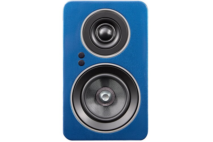 Compact active bookshelf speakers delivering clear, balanced sound with built-in amplification - Blue