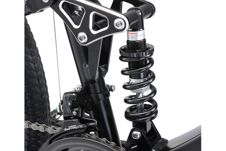 - Dual Suspension System: Features a front suspension fork and rear shock absorber to effectively soak up impacts and maintain tyre contact on uneven ground.