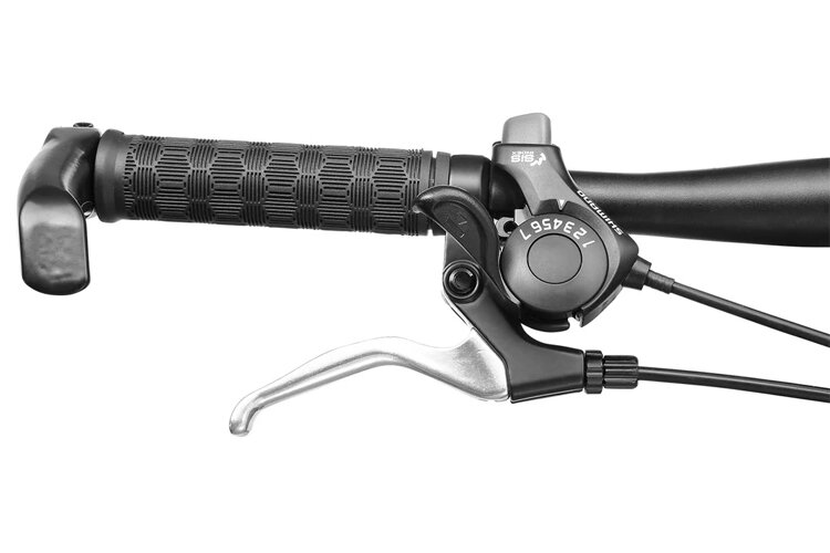 - 21-Speed Shimano Drivetrain: Equipped with a Shimano TY300 rear derailleur and microSHIFT shifters for smooth, dependable gear transitions across all types of elevation.