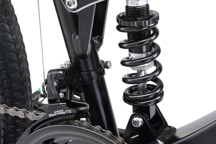 - Dual Suspension System: Equipped with a front suspension fork and a rear shock absorber to effectively dampen impacts for a more comfortable off-road experience.
