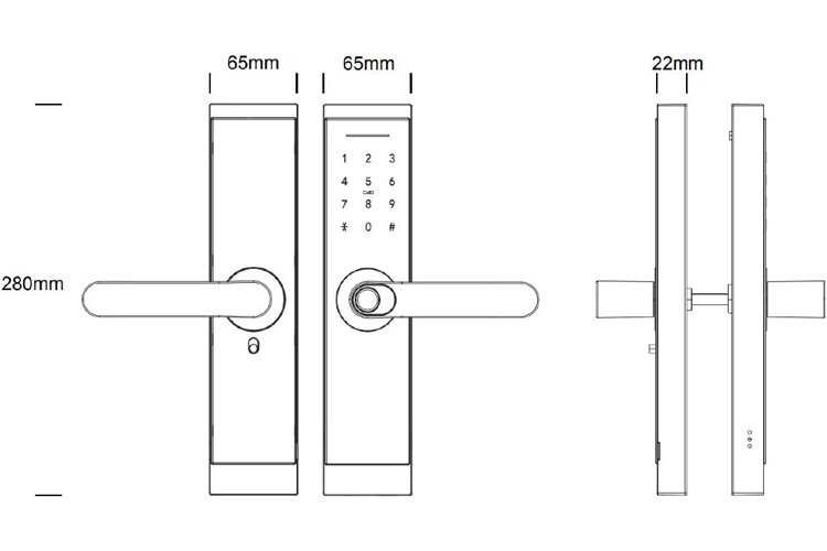 - Unlock Options: Bluetooth App, Wi-Fi App, Fingerprint, Password, Card, Mechanical Key