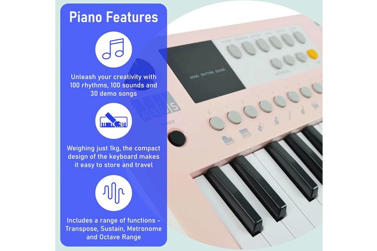 Whether you're beginning your musical journey or need a space-saving practice instrument, the Axus Mini Keyboard delivers portability, ease of use, and a wide range of musical options.